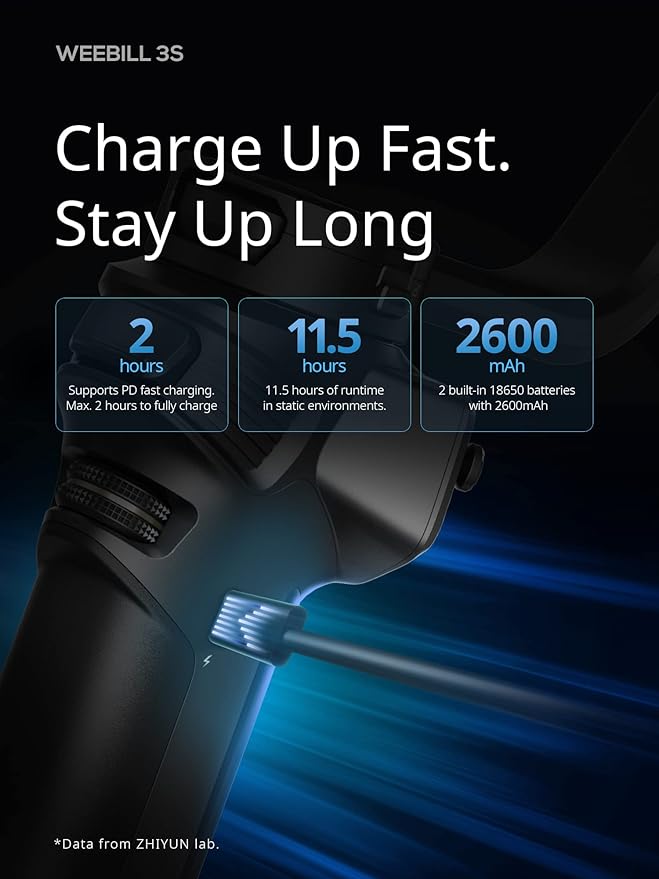 ZHIYUN Weebill 3S Gimbal Stabilizer, a powerhouse designed for DSLR and mirrorless cameras. Combining next-generation stabilization technology, ergonomic design, and versatile shooting modes, the Weebill 3S ensures smooth, cinematic footage in any environment. With its strong payload capacity, built-in fill light, and extended battery life, this gimbal is the ultimate tool for creators who demand precision, reliability, and creative freedom. Compact yet powerful, it’s engineered to elevate your storytelling.